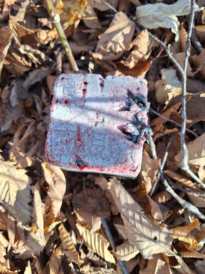 猛烈な藪の中に隠されている地籍調査の境界杭。