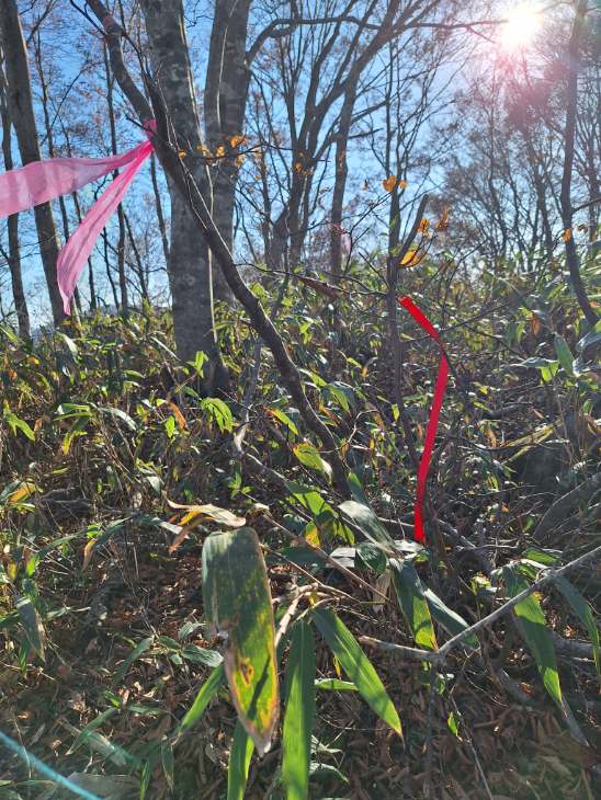ところがどっこい、新たなピンクテープが付けられ、笹薮も頂上まで刈られているではありませんか!?