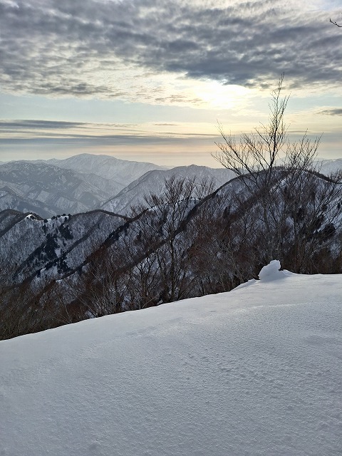 雪山道具も持ってなかったから、ツボで遊ランドの向かいの尾根から取り付いて・・・さ。