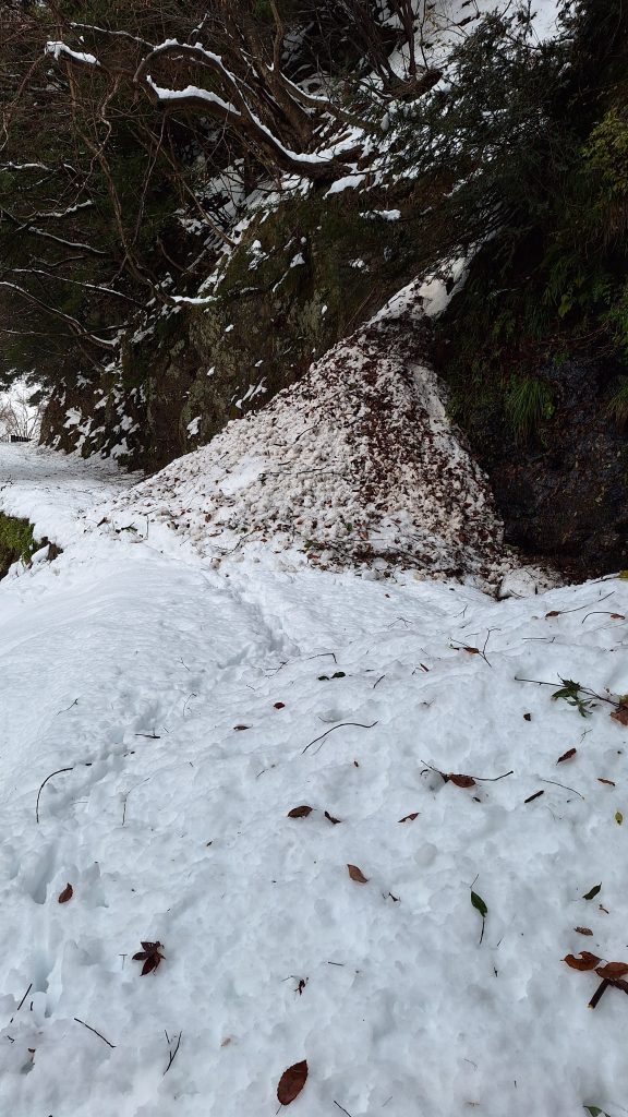この雪崩、帰りはもっと緩んでて危なかった