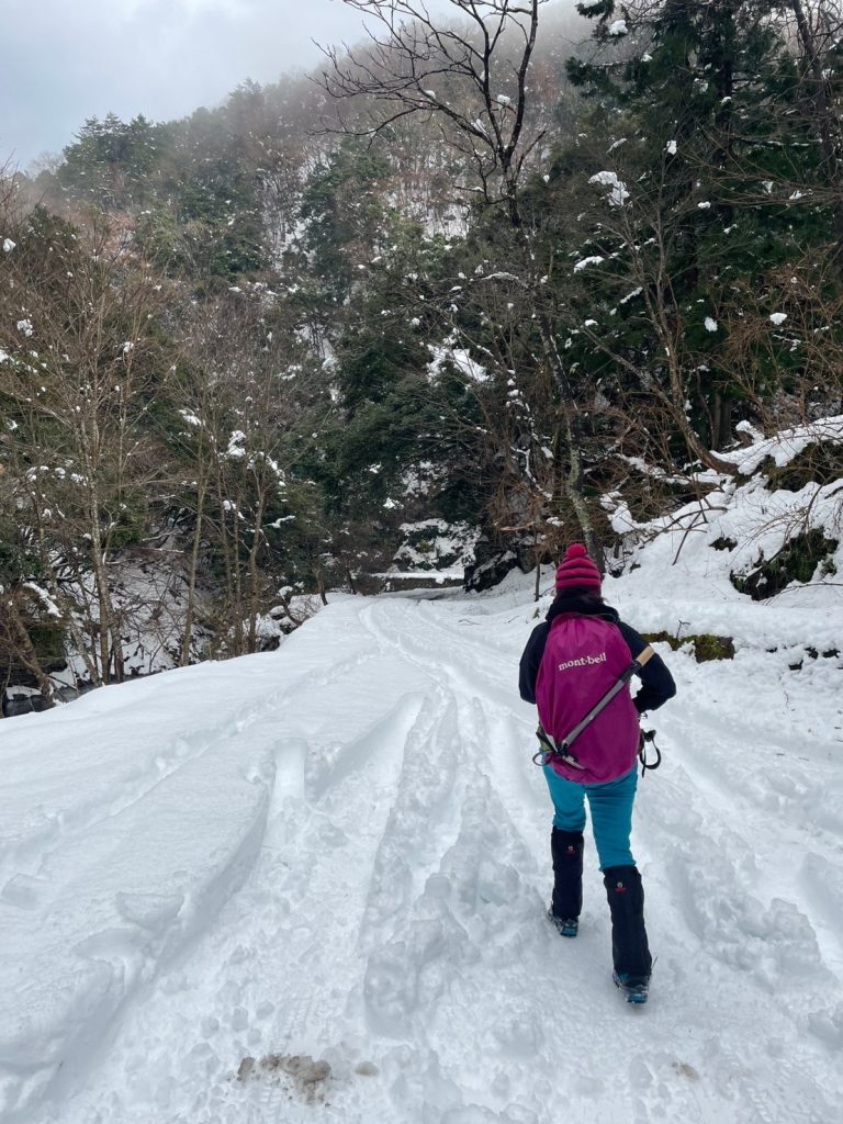 一応滝の上まで行く予定だったからピッケル持参したものの